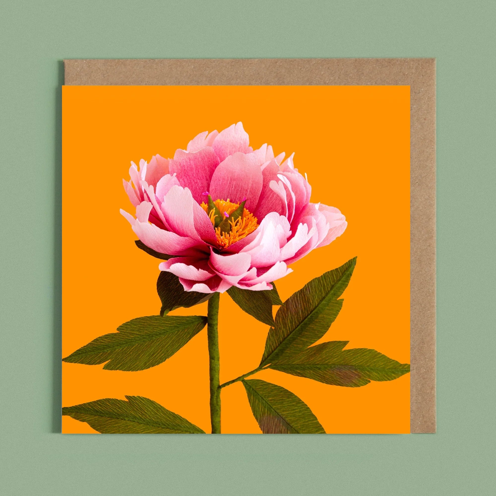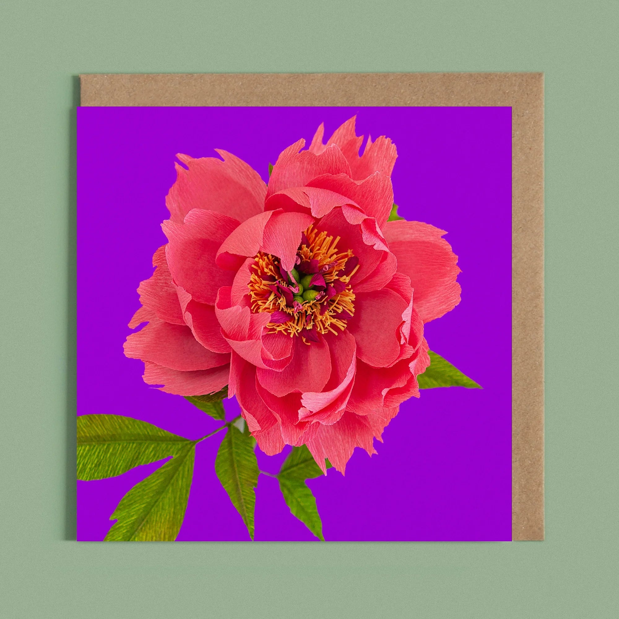 Peony Coral - Blank Greetings Card | Daphne Fitch
