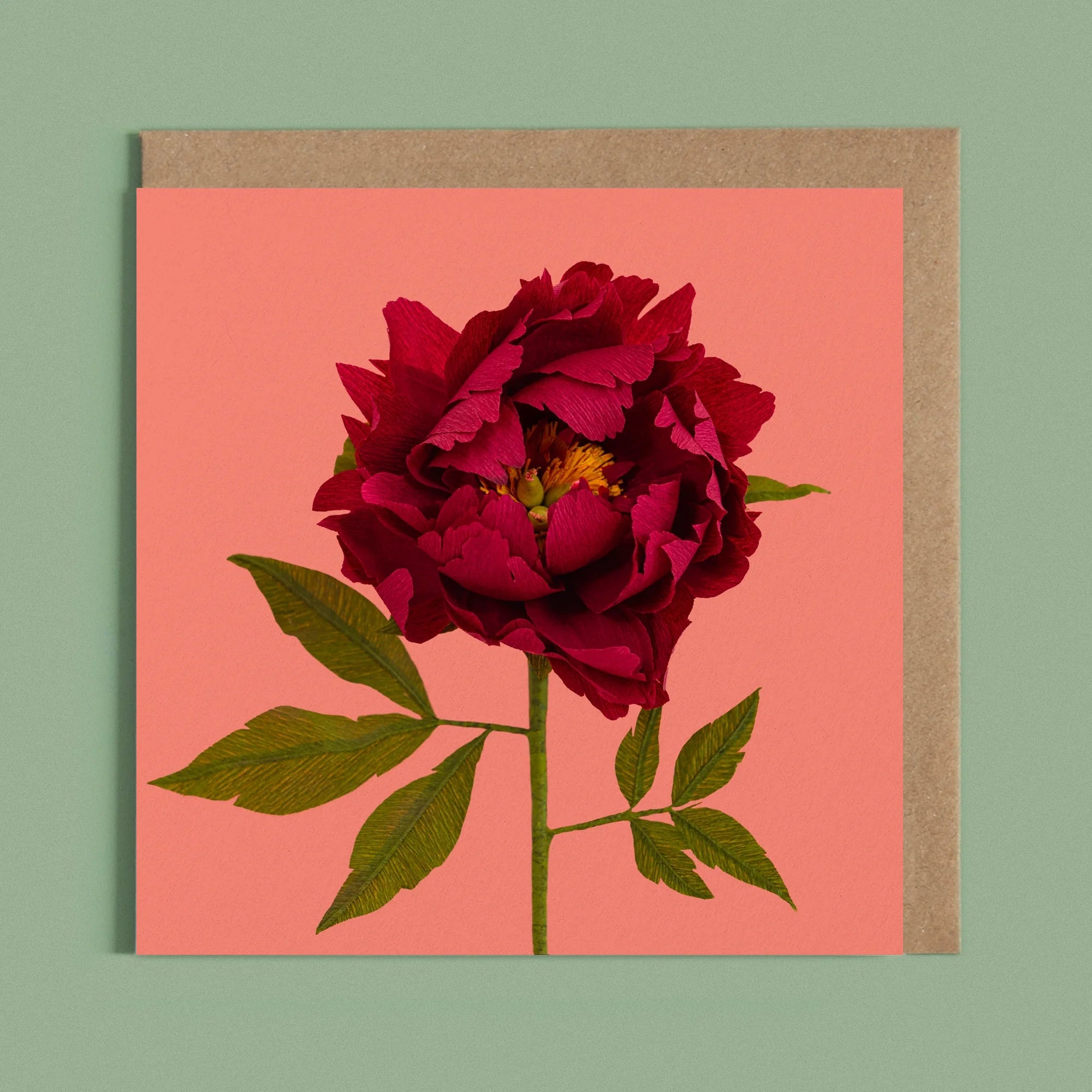 Peony Garnet Red - Blank Greetings Card | Daphne Fitch