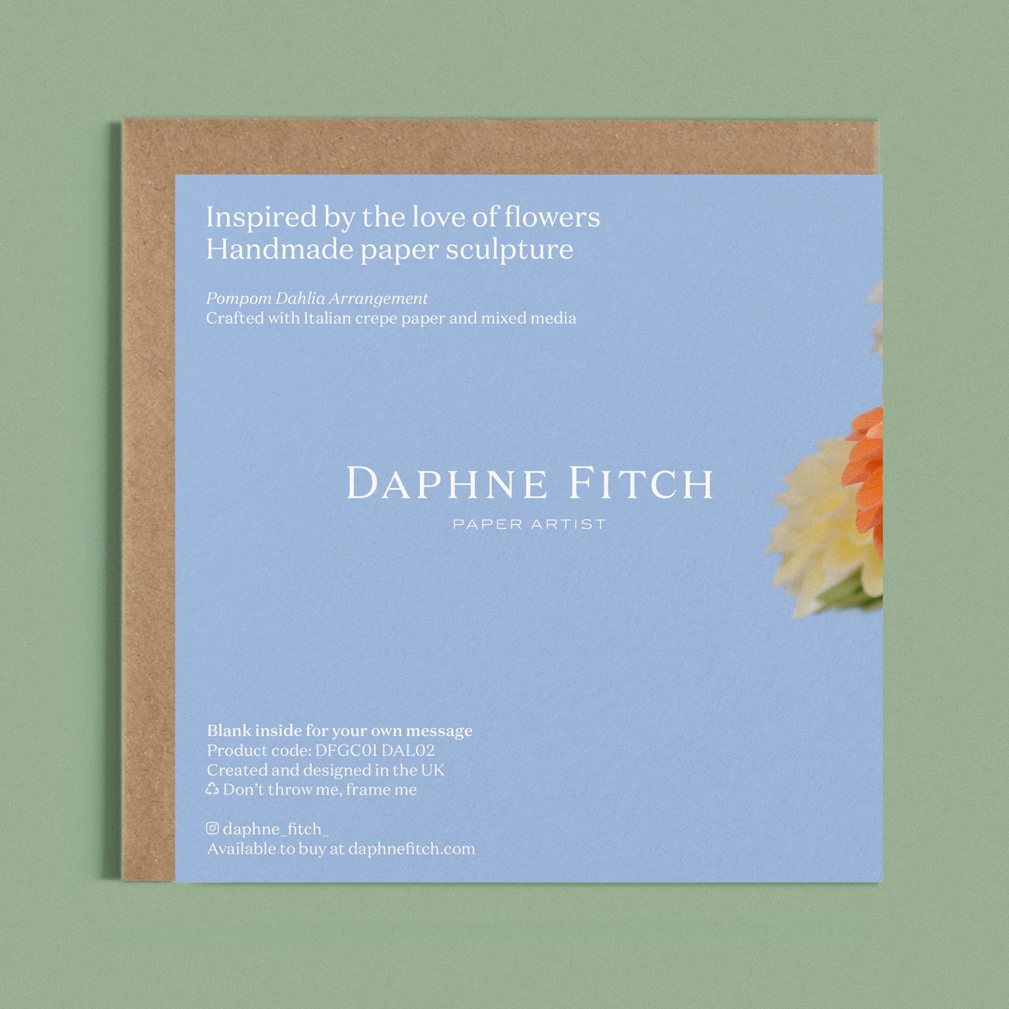 Dahlia Peach and Cream Pompom Arrangement - Blank Greetings Card | Daphne Fitch